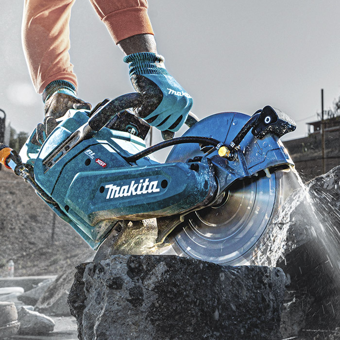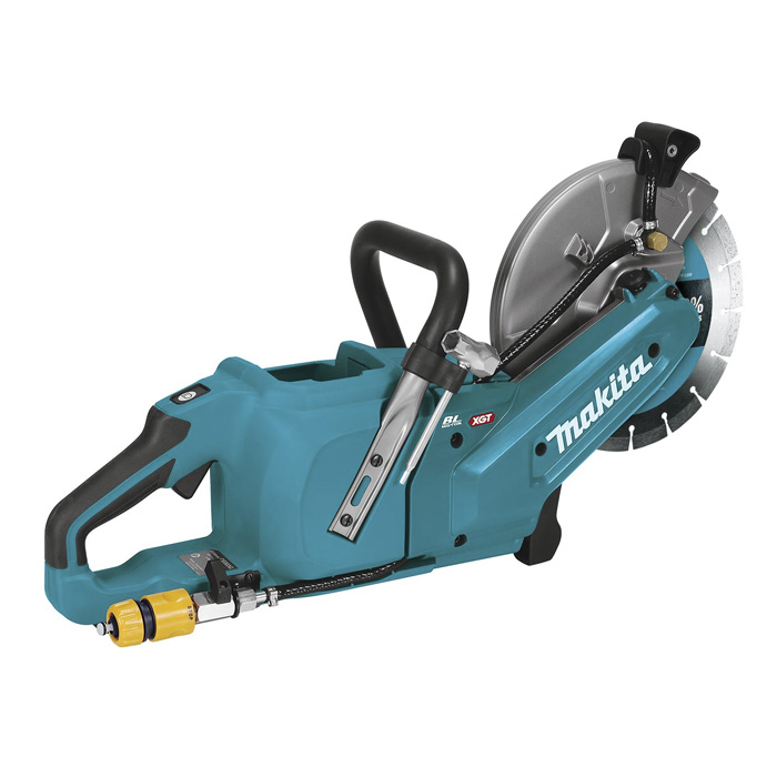 La Cortadora de Concreto Inalámbrica XGT de 40Vmax y 230 mm (9") con Freno Eléctrico. Se ha logrado una alta eficiencia con cualquiera de las baterías BL4040F/BL4050F/BL4080F. Equipada con luz indicadora de sobrecarga y luz de trabajo LED que permite la operación en sitios oscuros donde no hay suministro eléctrico. Se puede conectar un kit de suministro de agua; al suministrar agua al disco, se minimiza la generación de polvo durante el corte.